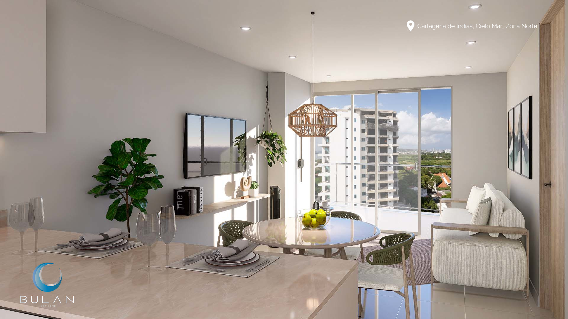 Sumérgete en el futuro de tu inversión con nuestros renders 3D fotorrealistas. Cada apartamento en Bulan Sky Line ha sido concebido para ser una obra maestra de diseño contemporáneo y funcionalidad en Cielo Mar, Cartagena. Explora la calidad de los acabados, la amplitud de los espacios y las vistas panorámicas que maximizan tanto tu confort como el potencial de rentabilidad de tu propiedad.