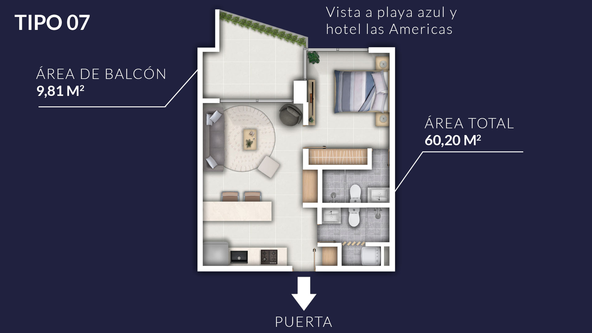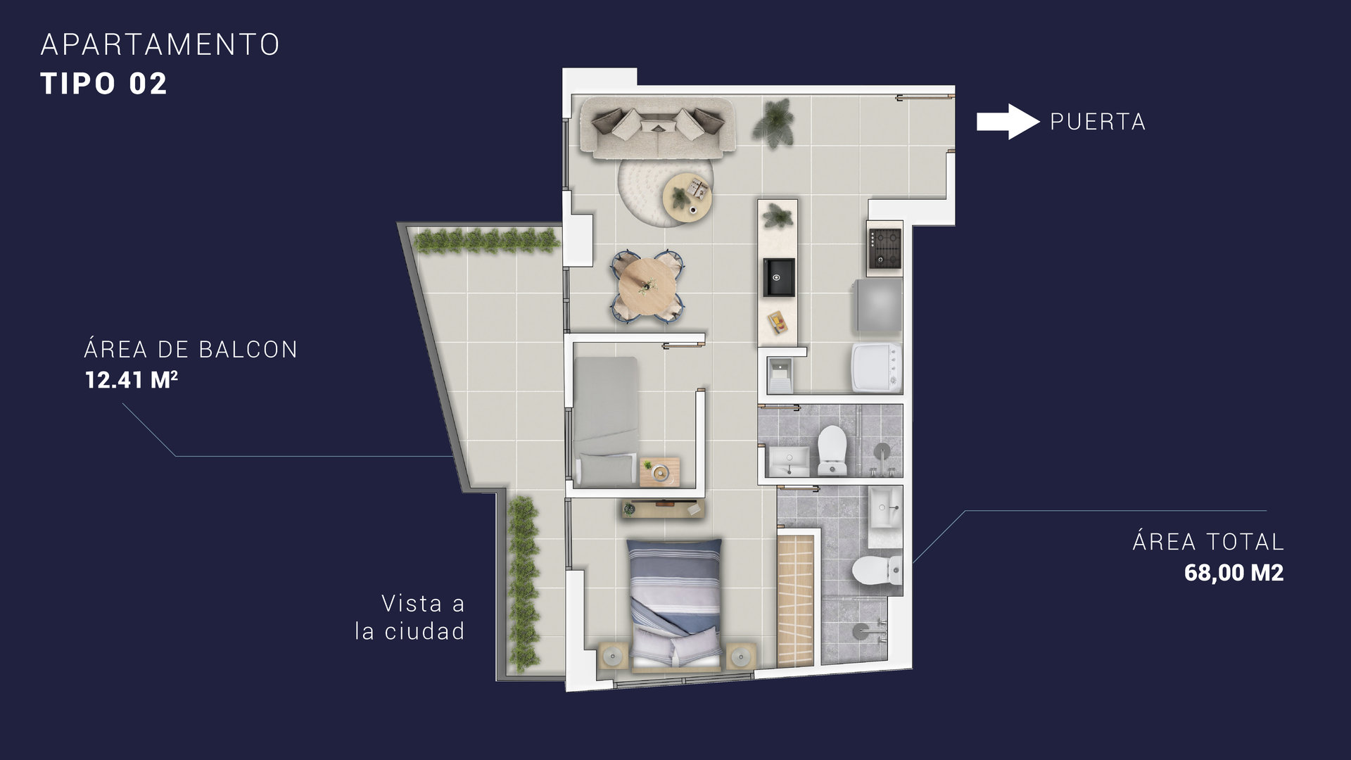 Las imágenes contenidas en este impreso constituyen una unidad jurídica que complementan y actualizan la información presentada; en consecuencia, pueden presentar variaciones, pues contienen elementos de apreciación estética que son interpretación del artífice de la pieza publicitaria. Los materiales, colores, equipamiento y mobiliario que se exhibe es ilustrativo y no comprometen a la constructora. Las especificaciones y dimensiones definitivas serán las aprobadas por la curaduría urbana y son susceptibles de modificación por las autoridades administrativas de control. Las áreas mencionadas corresponden al área total construida. El área privada resulta de la exclusión de elementos como muros estructurales, columnas, ductos y muros de fachada, la cual se informa en la lista de precios.